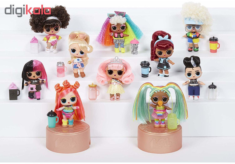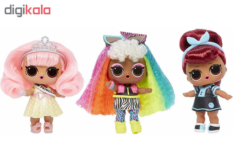 سری جدید عروسکهای LOL Surprise این بار با موهای ابریشمی به بازار آمده اند. مرحله به مرحله بسته بندی رو باز کنید تا 15 تا سورپرایز داخل جعبه مشخص شود. این سورپرایزها شامل یک عروسک، استیکر، لباس، کفش، قمقمه و کلی اکسسوری دیگه است. بسته بندی عروسکهای Hairgoals به نحوی است که میتوانید از آن به عنوان سالن آرایش، استند نگه داری و نمایش عروسک و یا کیف برای حمل آن استفاده کنید. با قمقمه به عروسک آب دهید و بعد سر عروسک رو فشار بدهید تا ببینید چه سورپرایزی براتون دارد. عروسک میتواند به صورت شانسی یکی از این کارها رو انجام بدهد: تف کردن، گریه کردن و یا دستشویی کردن. این عروسکها همچنان ممکن است دارای قابلیت تغییر رنگ باشند. برای اینکه ببینید این قابلیت رو دارند یا نه، یکبار داخل آب سرد و یکبار داخل آب گرم فرو ببرید.