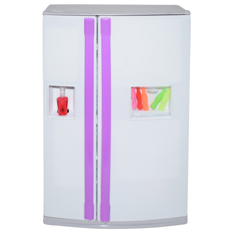 یخچال ساید اسباب بازی مناسب دختران داخل یخچال و درون درب کوچک روی یخچال بطری و میوه های پلاستیکی کوچک قرار دارد برای اینکه بازی کودکان واقعی تر باشد . قطعات کوچک بطری و میوه مناسب کودکان زیر 3 سال نیست