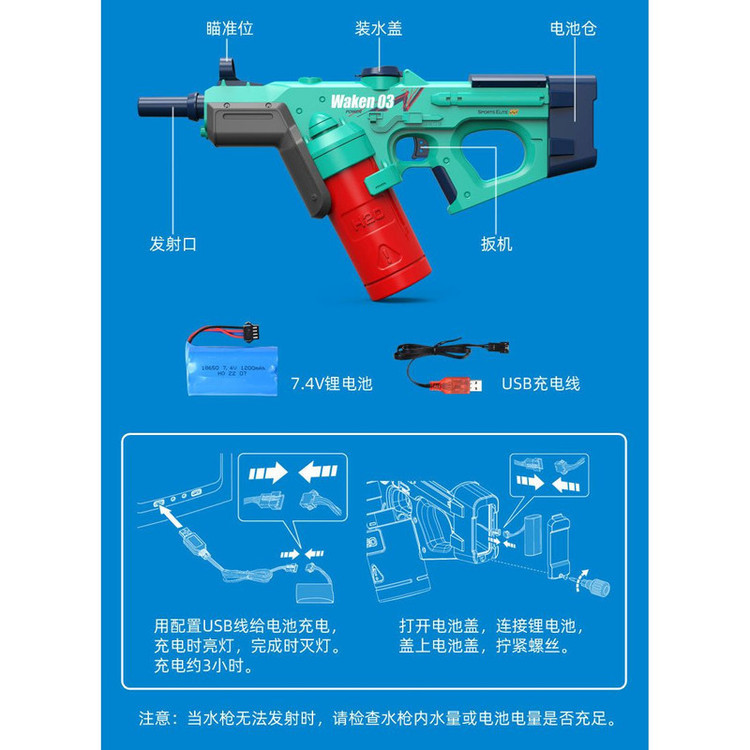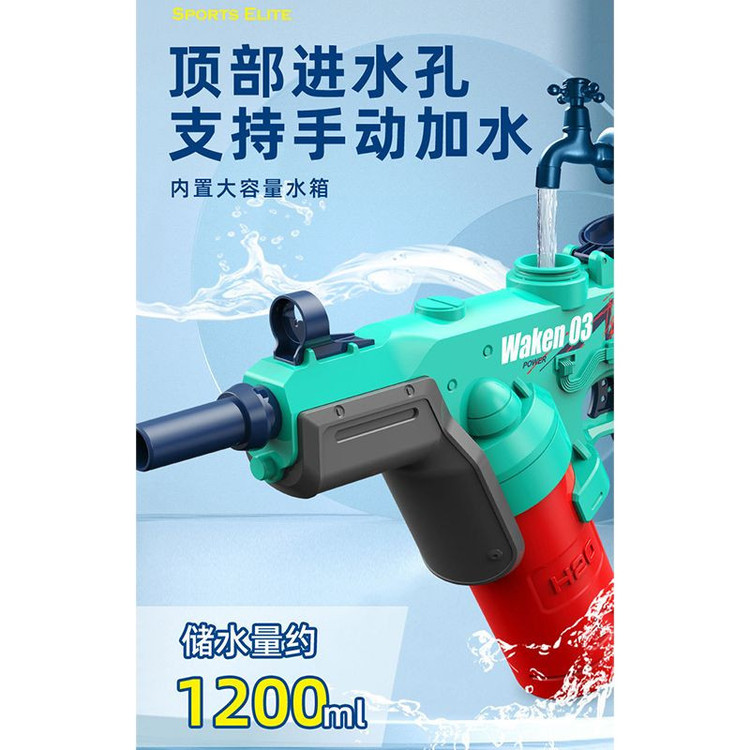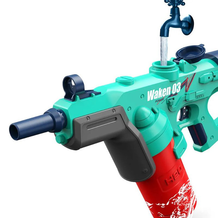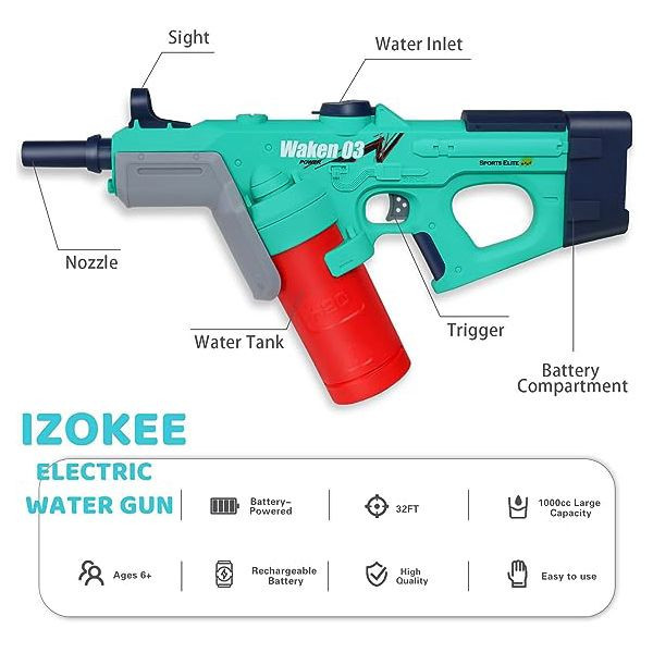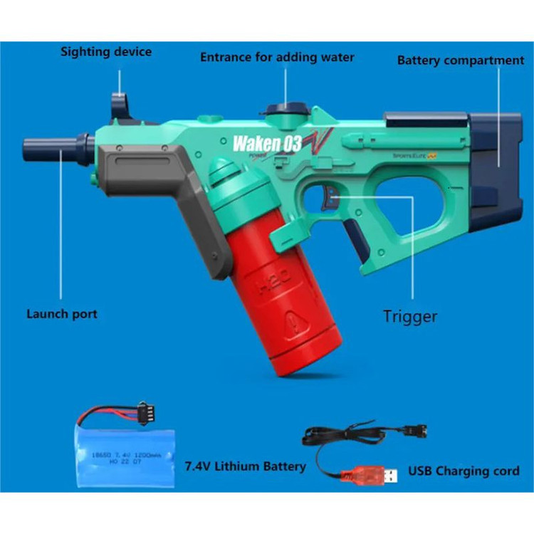 هیچی به اندازهی آببازی و خیس کردن دوستاتون توی یه روز گرم مزه نمیده. توی حیاط خونهتون یا توی پارک باهم قرار بذارید و با اولین شلیک جنگ آببازی رو شروع کنید.در فصل گرما و تابستان بازی با آب برای همه لذتبخش بوده و همه از بازی کردن با آب لذت میبرند. این تفنگ آبپاش گزینهای مناسب برای این هدف است تا تابستانی شاد و مهیج برای خود و عزیزانتان بسازید.این تفنگ آبپاش با طولی 53 ارتفاع 30.5 سانتی متری ابعادی نسبتا بزرگ داشته و به کمک آن میتوانیدحسابی دوستانتان را خیس کنید. جنس این تفنگ آبپاش از پلاستیک مرغوب بوده (ABS با بهترین کیفیت) و در برابر گرما مقام بوده و تغییر رنگ نمیدهد.برد و شلیک این تفنگ بصورت میانگین حدود 10 تا 15 متر و ظرفیت گنجایش آن حدود 1200 میلی لیتر آب می باشد. و مناسب برای سنین 8 سال به بالا می باشد. به هیچ وجه باتری این تفنگ آبپاش را داخل آب قرار ندهید