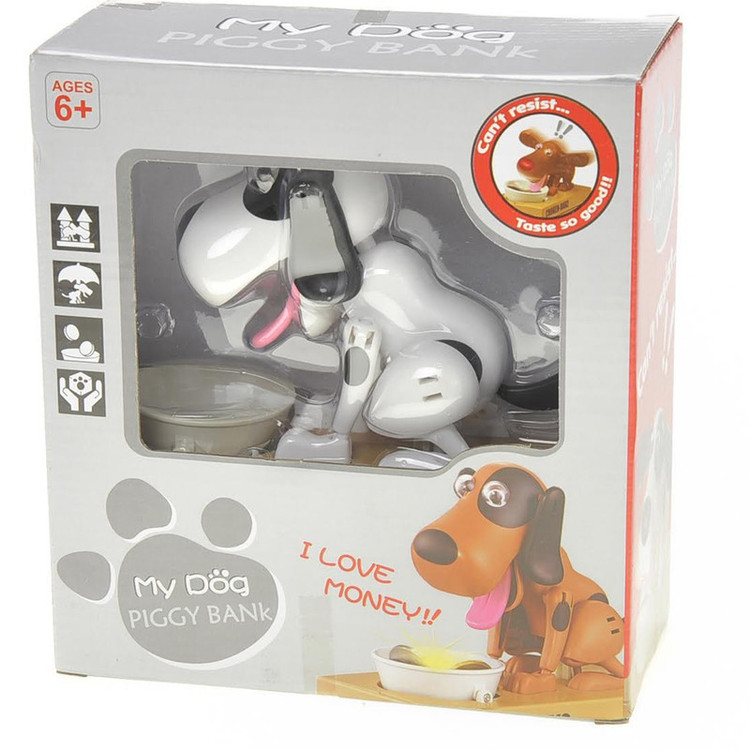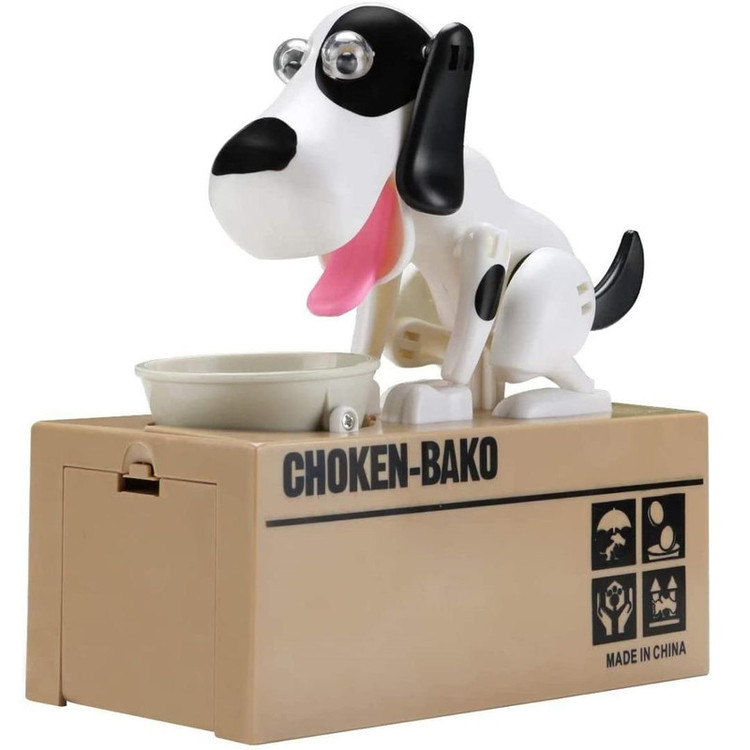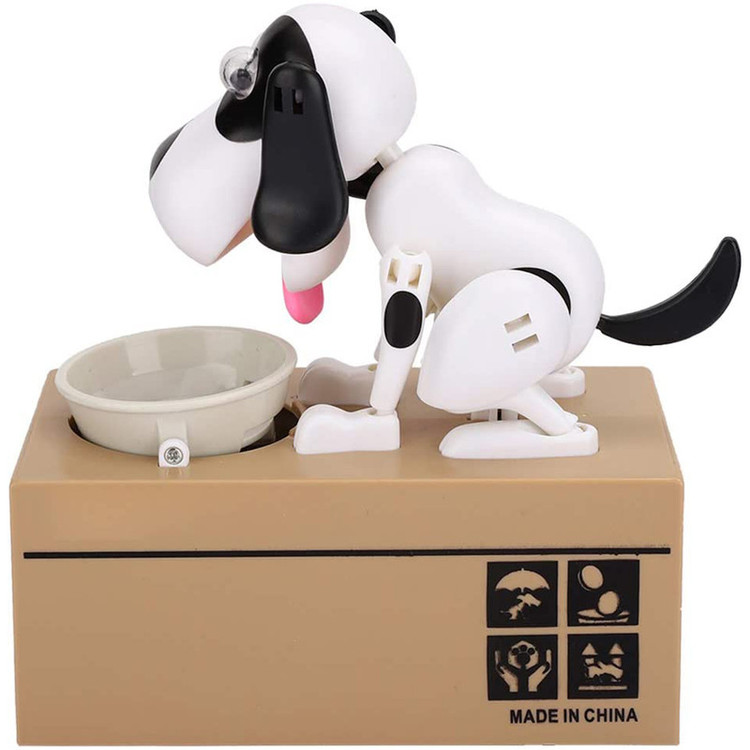 - دارای صدا هنگام پول انداختن داخل آن - تکان خوردن سر سگ و ادا در آوردن خوردن سکه و انداختن سکه به قلک