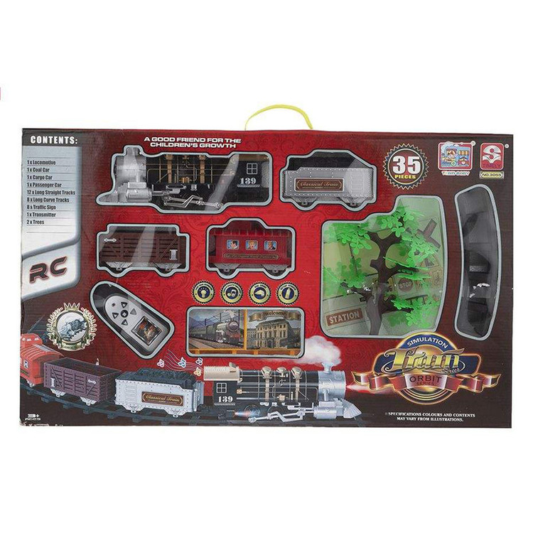 متاسفانه این کالا در حال حاضر موجود نیست. میتوانید از طریق لیست بالای صفحه، از محصولات مشابه این کالا دیدن نمایید.قطار واگن با زغال سنگ - 1 قطعه واگن باری - 1 عدد کالسکه مسافری - 1 عدد راه آهن کودکان (84x136 سانتی متر) ریموت کنترل کنترل از راه دور این محصول 4تا باتری قلمی میخورد 4 تا باتری AA