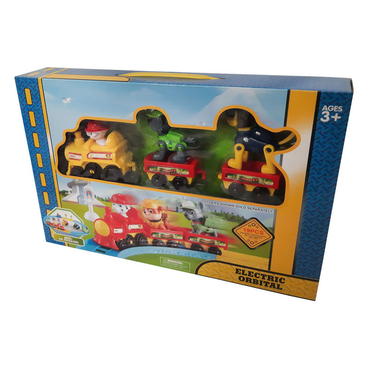قابلیت حرکت روی ریل دارد دارای 10 عدد ریل دارای 2 عدد عروسک سگ نگهبان دارای 1 عدد لوکوموتیو و 2 عدد واگن ساخته شده از پلاستیک با کیفیت دارای بسته بندی جعبه ای شکیل و با کیفیت مناسب هدیه پاها و سر سگ ها به صوت دستی حرکت میکند