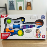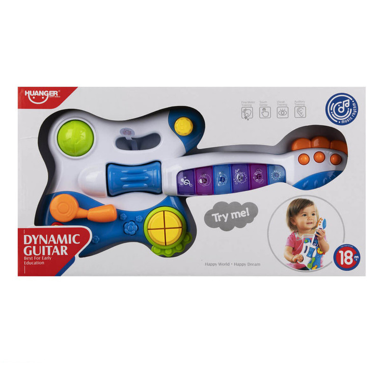 کودک شما میتواند یک گیتاریست باشد! کافی است از همان کودکی به علاقه و اشتیاقش بها دهید. اسباب بازی گیتار موزیکال در تقویت هوش موسیقیایی و تشویق کودکان به یادگیری یک ساز بسیار موثر است. غیر از موزیکها و نتهای مختلف، روی بدنهی اسباب بازی جغجغهها و اشکال متحرکی وجود دارد که با تکان خوردن صدا میدهند. موقع نوازندگی چراغهای این اسباب بازی نیز روشن میشوند. هنگامی که دکمهی دایره را فشار دهید یک صدای بامزه از گیتار خارج میشود. با استفاده از کلیدهای روی گیتار میتوانید صدای شبیهسازی شده به یک نت را بشنوید. دکمهای که شکل گیتار است، شروع به پخش ریتم میکند. با کشیدن دستهی دایرهای شکل روی بدنه، یک افکت صدایی گیتار الکتریکی پخش میشود. کودکان میتوانند دایرهی متحرک روی گیتار را بچرخانند، یا این که با حرکت دادن استوانهی وسط گیتار یک آهنگ پخش کنند. برای تست گیتار اسباب بازی، کافیست تا هر کدام از دکمههای مختلفی که روی بدنهی آن میبینید را فشار دهید. این گیتار اسباب بازی باتری خور پر از قابلیت است.