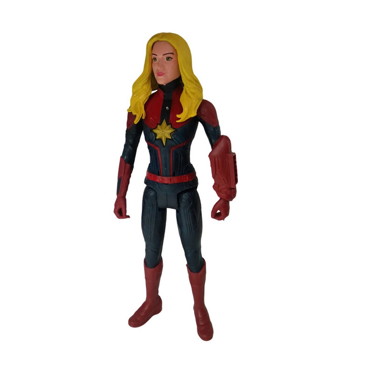 کاپتان مارول به ارتفاع 27 سانتیمتر دارای جنس خوب و بادوام . با فشار دادن دکمه روی این اسباب بازی چراغ روی سینه روشن و خاموش شده همراه با صدا که از بلندگوی این اسباب بازی پخش میشود . این اسباب بازی دارای بسته بندی خوب بوده و مناسب هدیه دادن میباشد .