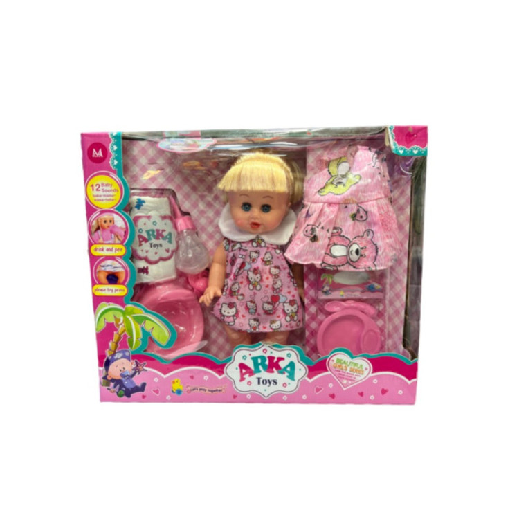عروسکبیبی بورن یا معروف به عروسک جیشی و موزیکال چشمهایش باز و بسته می شود فوقالعاده عروسک مناسب برای خاله بازی کودکان توانایی نشستن روی توالت فرنگی دارد پوشک کردن عروسک با استفاده از پوشک موجود در جعبه خوردن شیر یا مایعات با استفاده از شیشه شیر بی بی بورن دارای طرحبندی متنوع که لباس و رنگ مو عروسک متنوع می باشد موزیکال هم می باشد