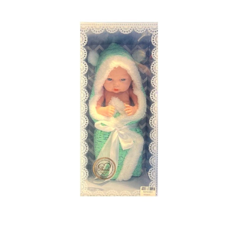 اسباب بازی عروسک که دور این عروسک با حوله تن پوش پوشیده شده و چشمای خوشگلی داره این عروسک