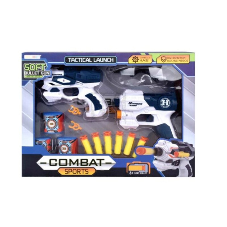 متاسفانه این کالا در حال حاضر موجود نیست. میتوانید از طریق لیست بالای صفحه، از محصولات مشابه این کالا دیدن نمایید.اسباب بازی تفنگ که شامل 2 تفنگ و 6 تیر ابری و 3 قوطی کوچک به عنوان نشان برای شلیک می باشد و کاملا بی خطر می باشد