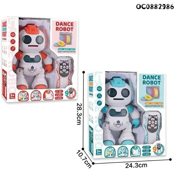 اسباب بازی ربات کنترلی، چندین ملودی مختلف دارد که با آنها می رقصد. ربات هوشمند دارای عملکردهای متعدد و قابل برنامه ریزی مثل حس حرکت، رقص با موسیقی و راه رفتن است. این اسباب بازی مهیج کنترلی میتونه ساعت ها کودک را سرگرم کند. اسباب بازی ربات کنترلی با کمک کنترلی که دارد می توان آن را کنترل کرد با فشردن یک دکمه ربات شروع به رقصیدن یا راه رفتن به عقب و جلو و چپ و راست می کند.