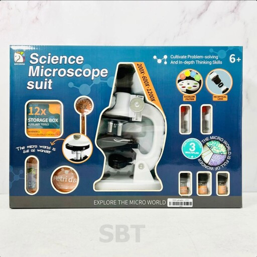 ویژگیها: دارای 30 تکه دارای چراغ LED باتری خور بزرگنمایی 200 تا 1200 برابر دارای 4 فیلتر رنگ